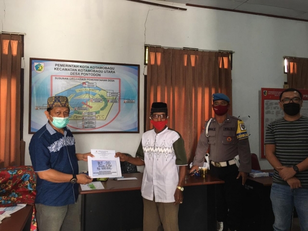 Sangadi Pontodon Ariono Potabuga memimpin langsung acara penyerahan bersama perangkat desa didampingi Babinkamtibmas, Ketua BPD, dan tenaga Ahli pendamping desa yang kemudian dilanjutkan oleh setiap Kepala-kepala Dusun dengan dibantu oleh Ketua-Ketua RT. Sebelum turun langsung kerumah warga Sangadi Pontodon menerapkan Protokol kesehatan kepada Perangkat Desa seperti menggunakan sarung tangan, menggunakan masker, membawa hand sanitizer, menjaga jarak serta mempersingkat waktu penyerahan.