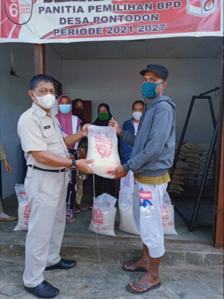 Pemerintah Desa Pontodon menyalurkan bantuan Cadangan Beras Pangan (CBP) pada hari Selasa, tanggal 27 Juli 2021.